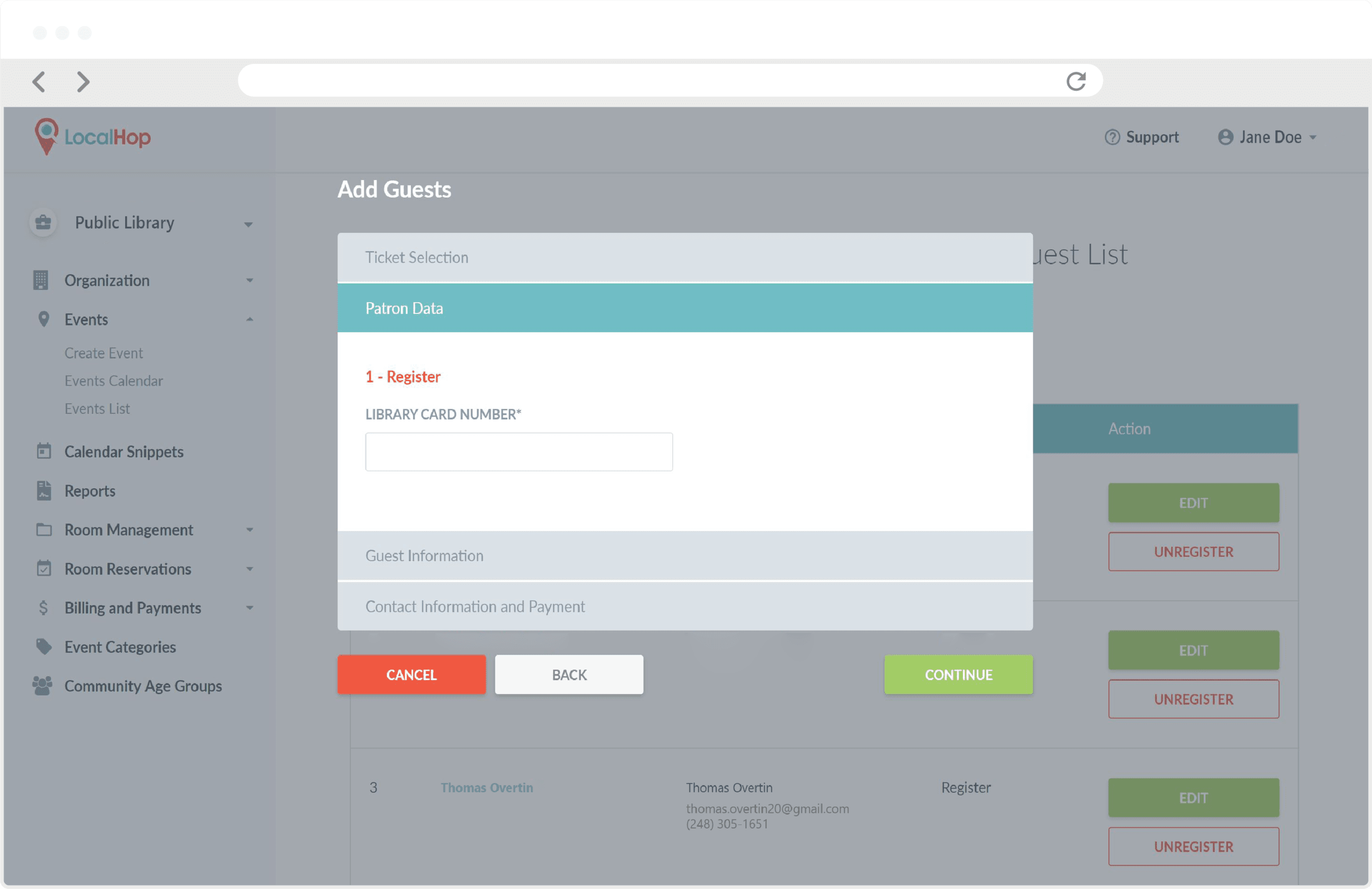 Do your patrons need a library card to register for events? LocalHop’s ILS integration streamlines your sign-up process and validates library cards before patrons are added to your guest list, ensuring a smooth and secure experience.